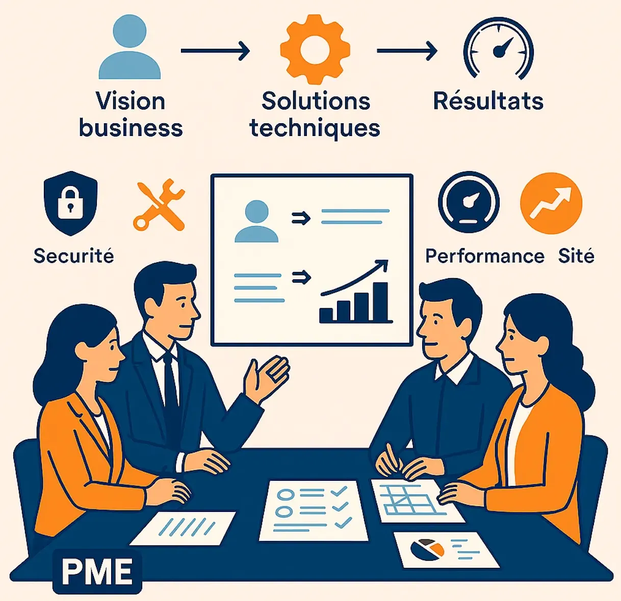 Une PME qui entame ce type de démarche cherche généralement à automatiser certaines tâches, à fluidifier la communication, à améliorer la performance commerciale, ou à valoriser ses données.