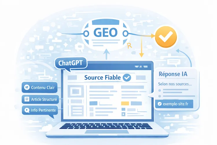 Le GEO consiste à optimiser un site web afin qu’il puisse être utilisé comme source par les moteurs d’intelligence artificielle. Lorsque ces outils génèrent une réponse, ils s’appuient sur des contenus jugés fiables et pertinents.