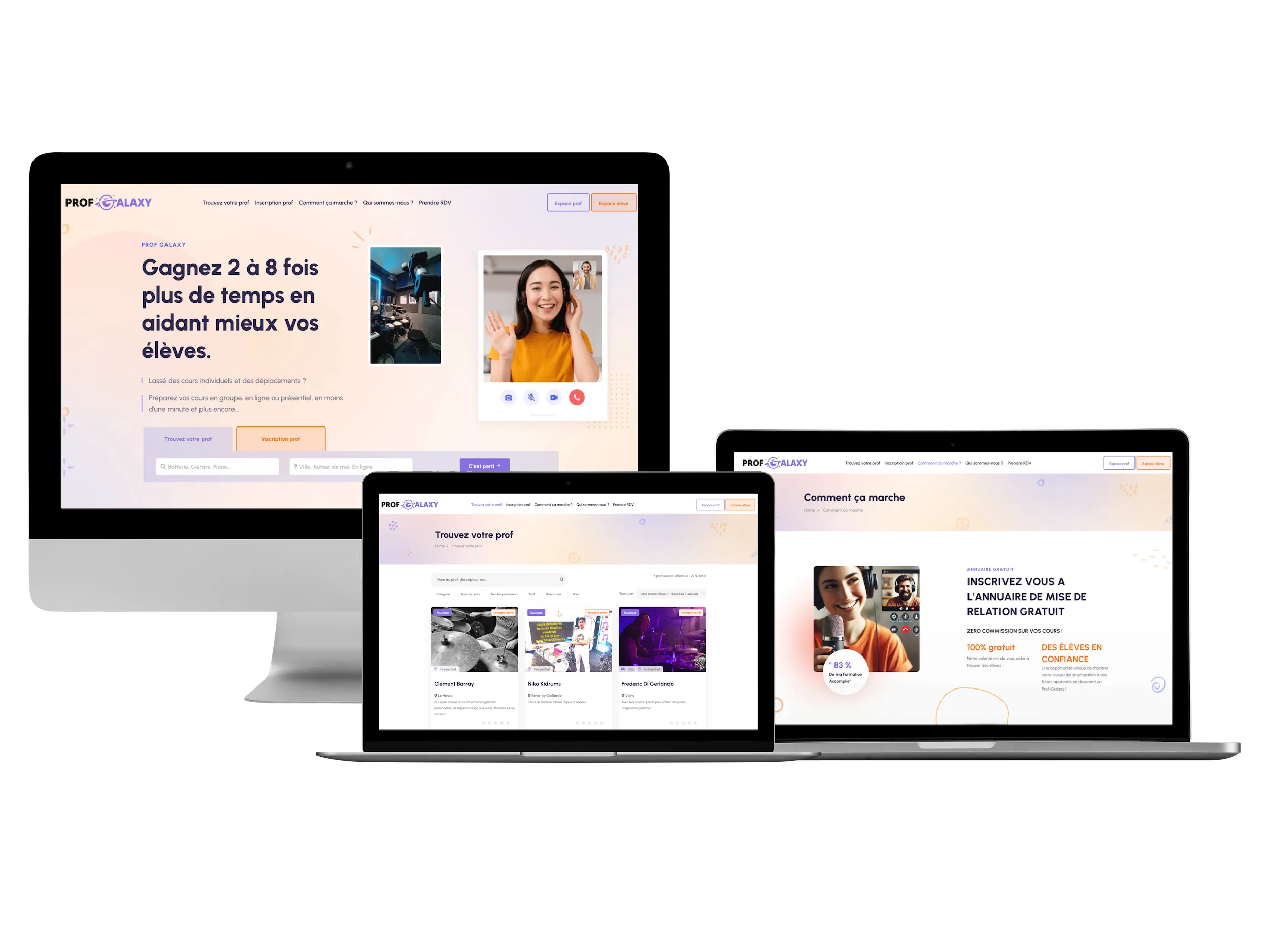 Prof-Galaxy propose un annuaire complet de professeurs, des outils de gestion qui facilitent la mise en relation avec les élèves, une organisation des cours simplifiée, des fonctionnalités de facturation et de suivi pédagogique qui allègent la charge administrative.