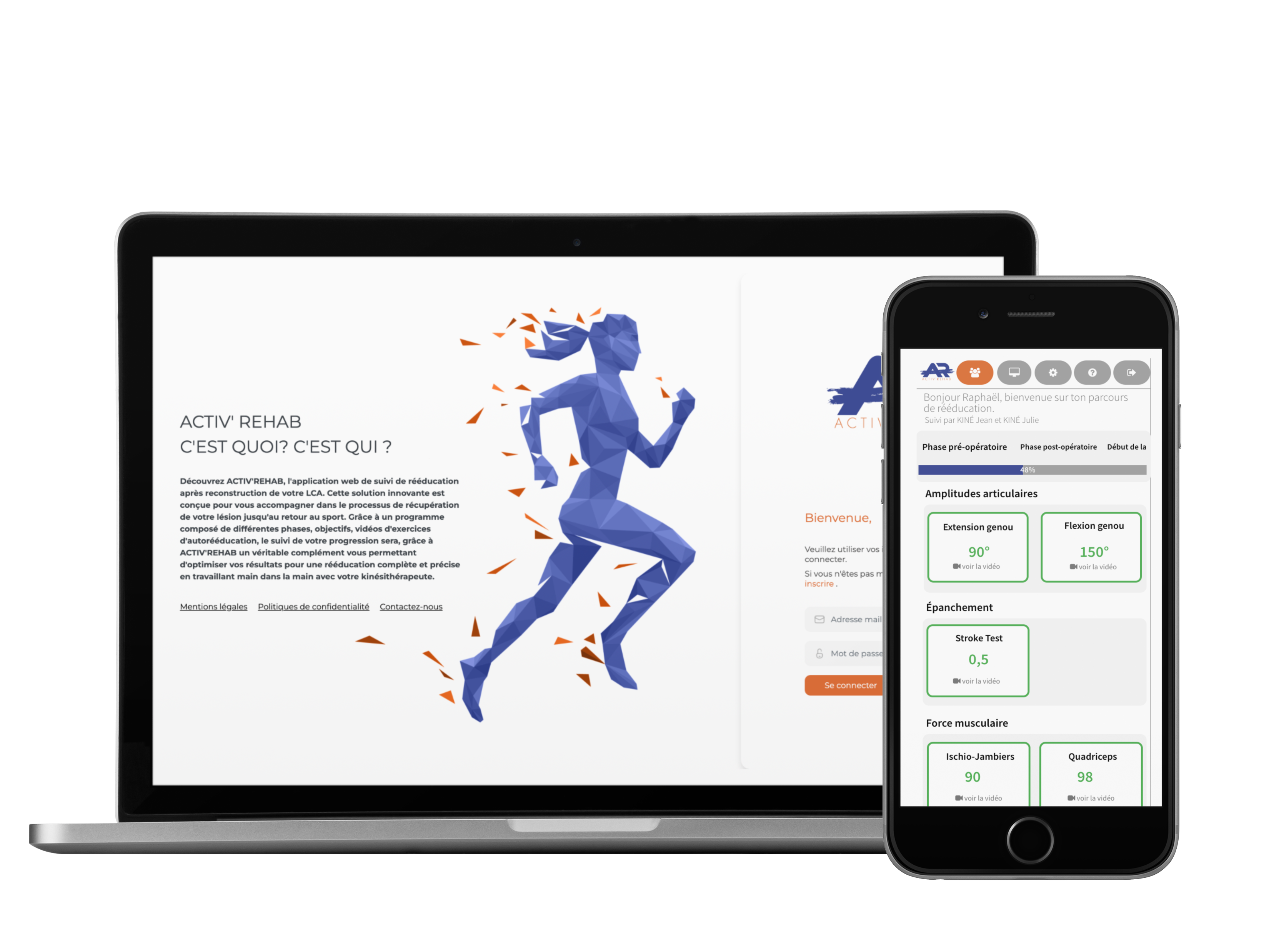 - Création et suivi de profils personnalisés pour les patients, kinésithérapeutes, et chirurgiens.